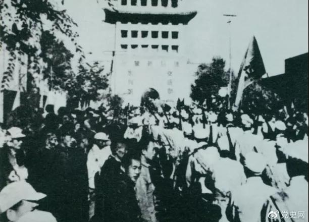 ▲1949年8月,蘭州解放。圖為第一野戰(zhàn)軍開進蘭州市區(qū)。